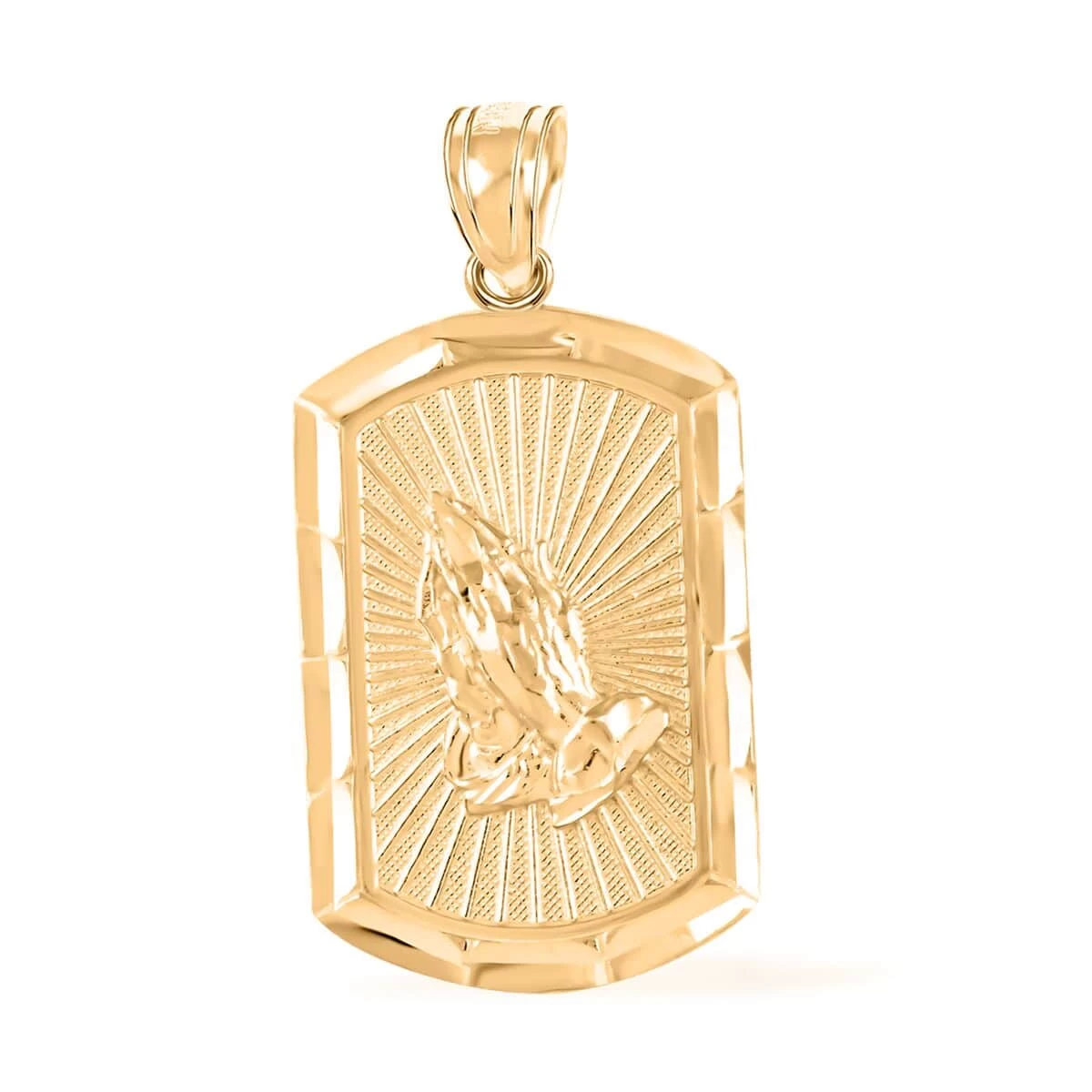 - A CELESTIAL MASTERPIECE: The 10K yellow gold hand pendant is a celestial masterpiece that encapsulates the beauty of devotion and reverence. The intricate details of the hand, clasped in a gesture of worship