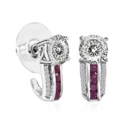 Discover the seamless blend of elegance and sparkle with the 120 facets moissanite and gemstone j-hoop earrings. These pieces artfully combine 120 facets moissanite and select gemstones in a tantalizing J-Hoop design, all platinum over sterling silver. This harmonious blend promises to bring a touch of luxury and a burst of sparkle to every occasion, marking you as a connoisseur of fine jewelry.
