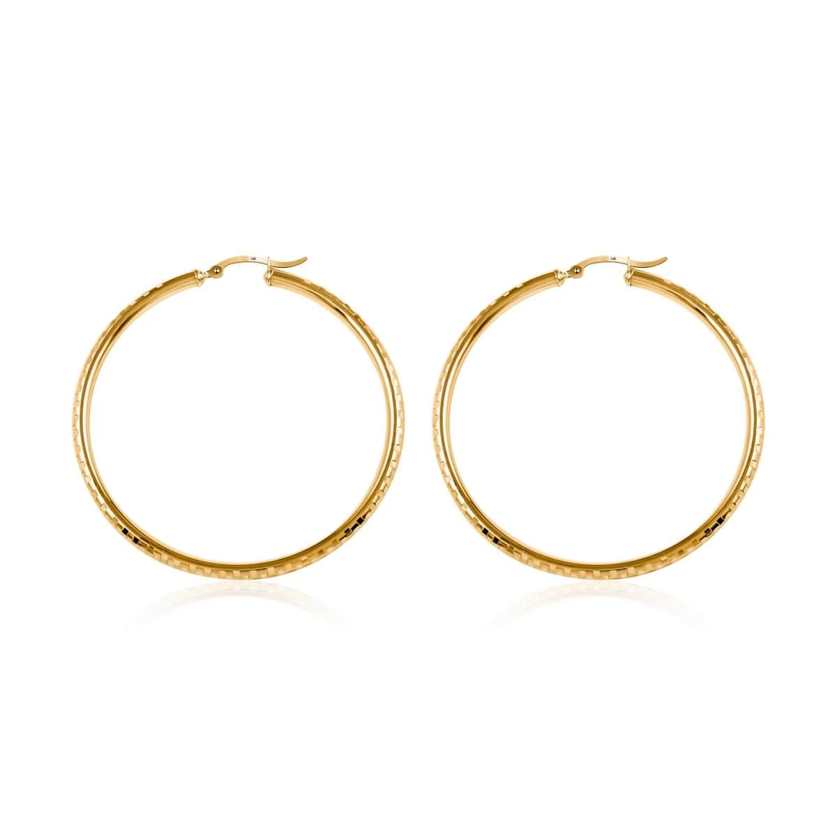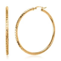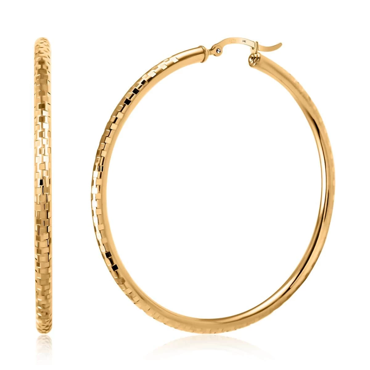 - METAL DETAILS: The diamond-cut hoop earrings are crafted from 14K yellow gold. This type of gold is a popular choice for jewelry due to its durability and timeless beauty. The warm, rich color of yellow gold complements a wide range of skin tones and outfits