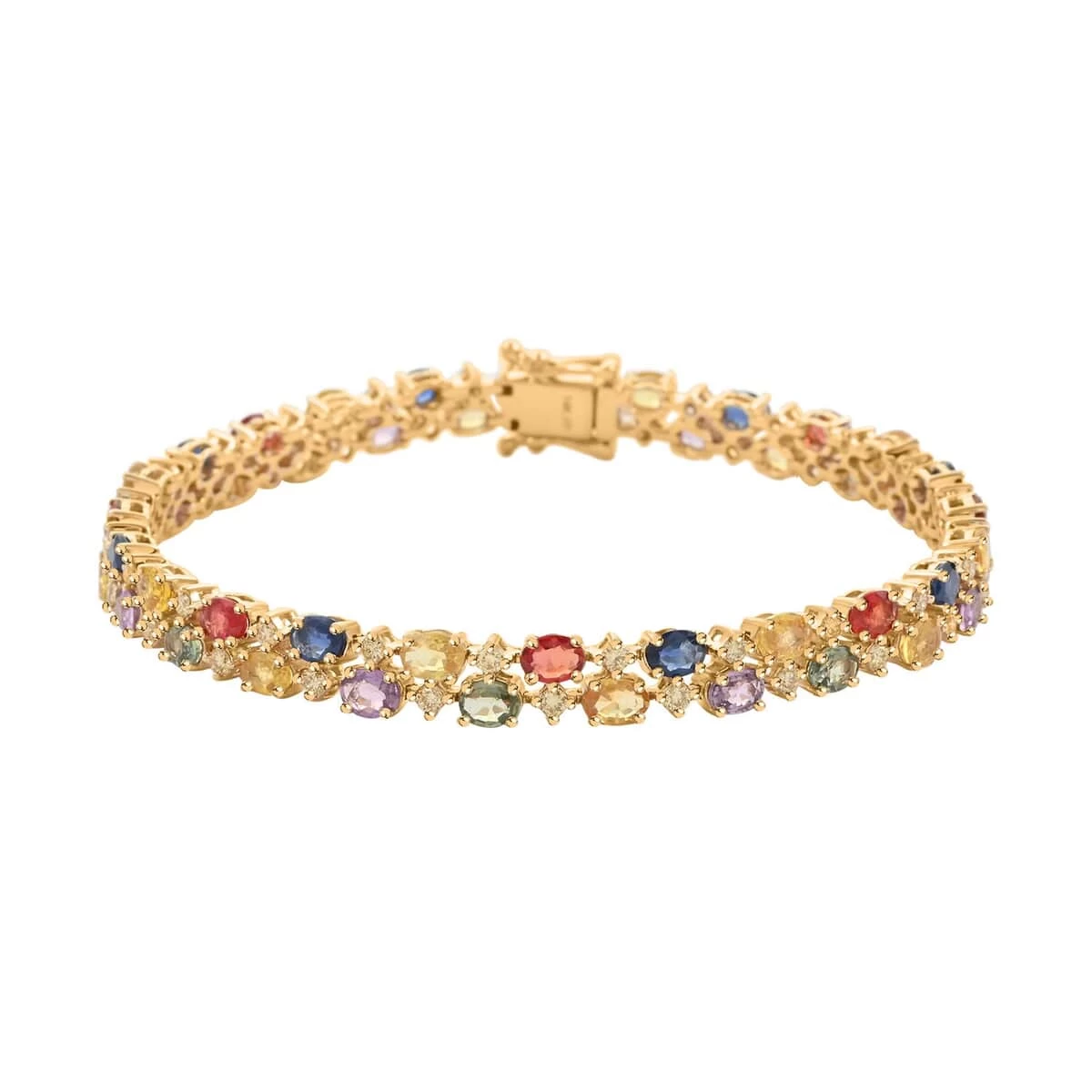 - A SYMPHONY OF ELEGANCE: This bracelet is a stunning arrangement of multi-colored Sapphires, each sourced and chosen for its exceptional color and clarity. From deep, royal blues to light, pastel pinks, these Sapphires are placed in a design inspired by the harmonious arrangement of celestial bodies
