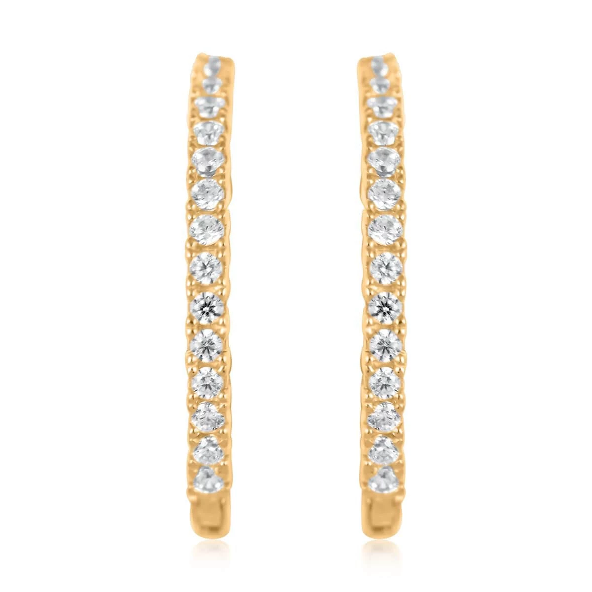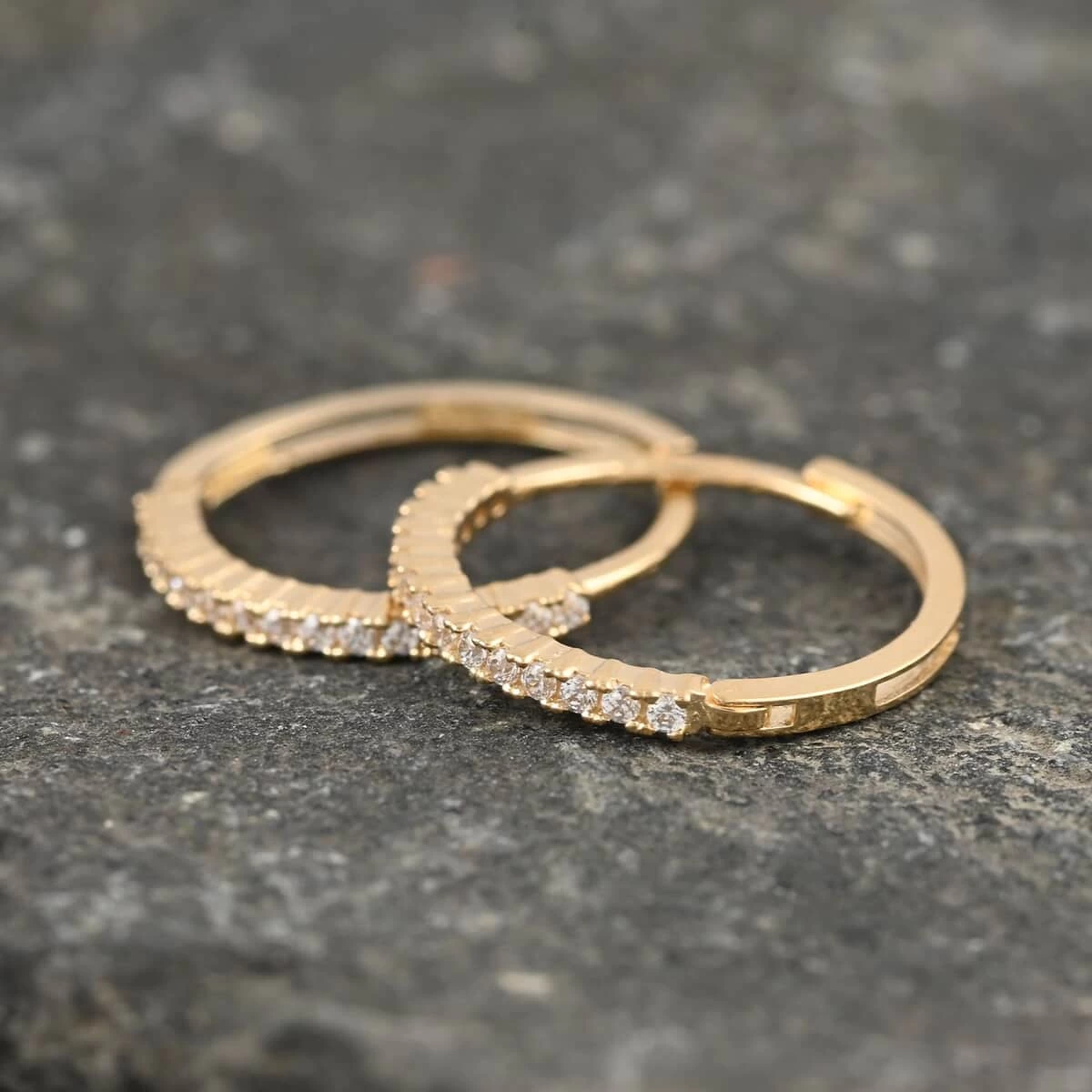 - INSPIRATION: These hoop earrings are inspired by the simplicity and elegance of the endless hoop design, featuring a continuous circle of 14K yellow gold with simulated diamonds symmetrically arranged along the outside of the hoop