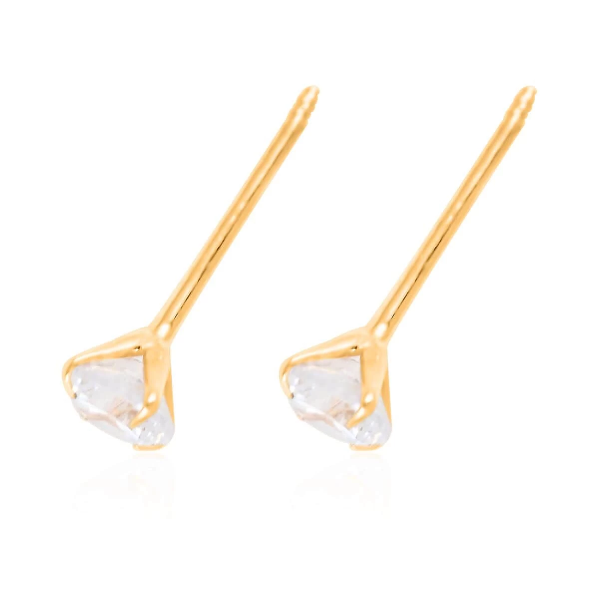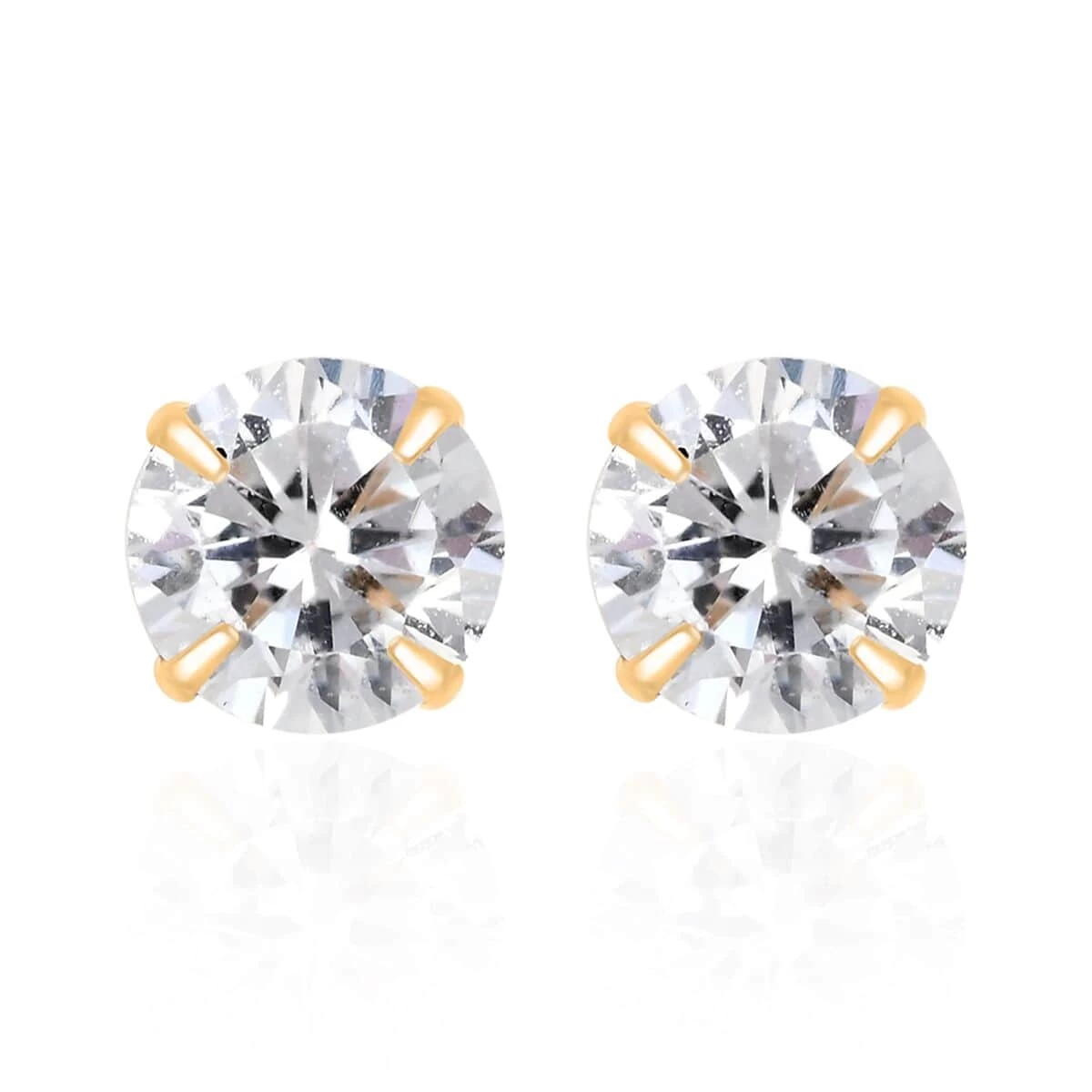 The 14K yellow gold simulated diamond solitaire stud earrings are a perfect pick to make a statement. These earrings feature round-shaped gemstones and are made from 14K yellow gold. The elongated prongs secure the gemstones, adding elegance and sophistication to any outfit. With a classic and timeless design, these stud earrings are easy to wear every day.