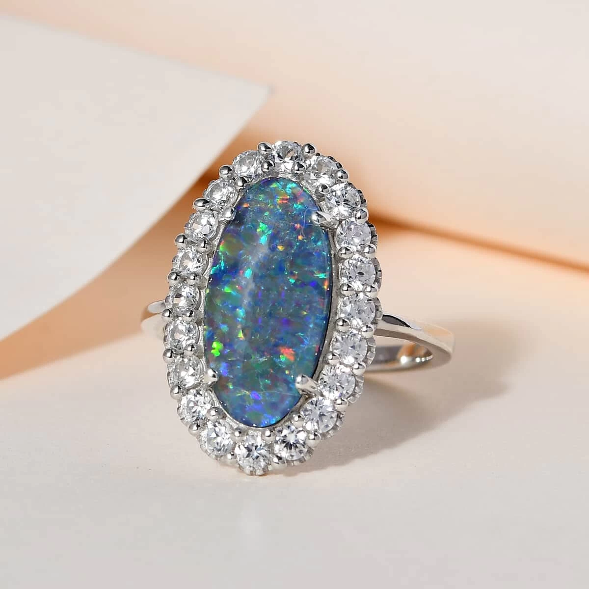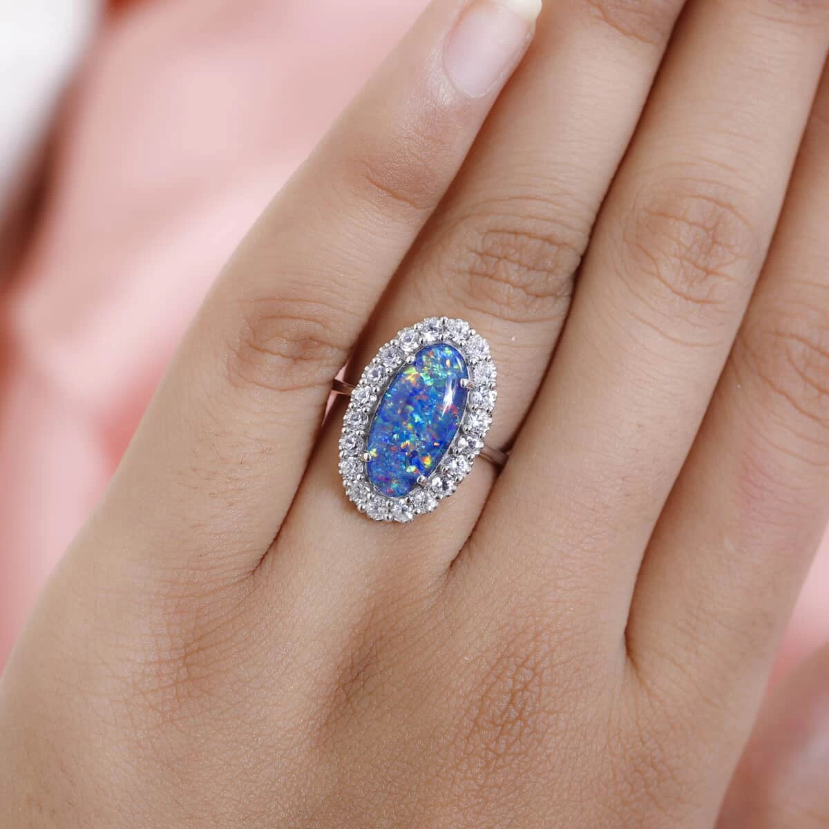 - SPARKLING HALO RING: The halo of white zircon enhances the opal’s beauty, providing a dazzling frame that catches the eye from every angle