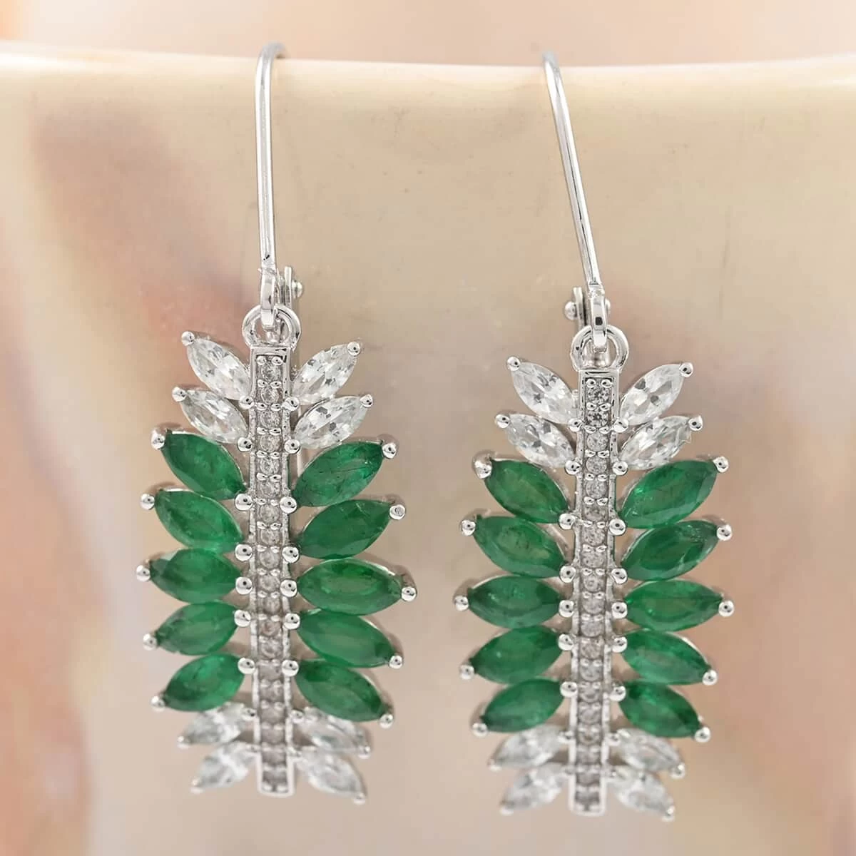 - SCINTILLATING SPARKLE OF WHITE ZIRCON: The white zircon stones surrounding the emeralds add a scintillating brilliance that complements and enhances the beauty of the gemstones. The zircon’s exquisite sparkle captures the light, creating a dazzling display that illuminates your face with every movement