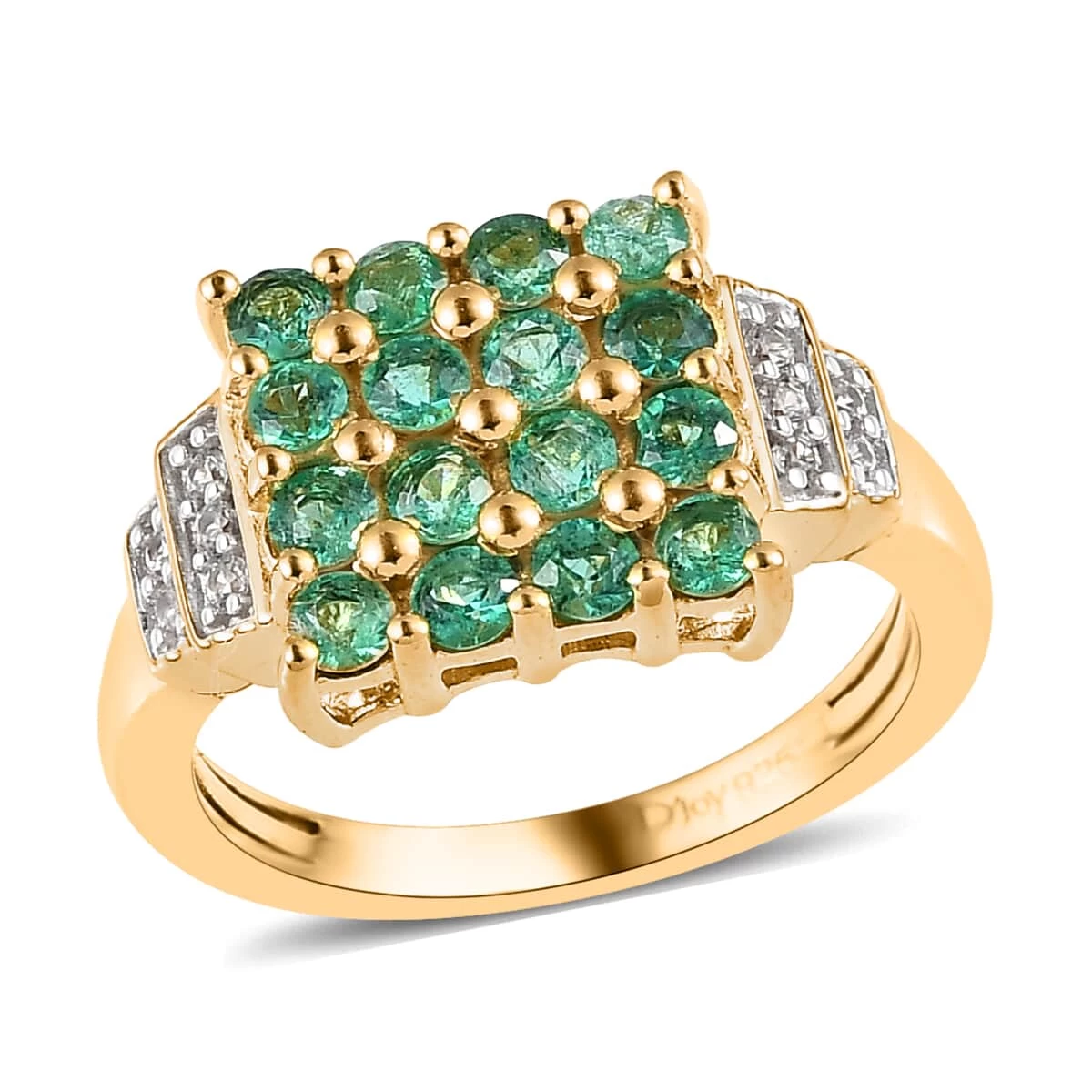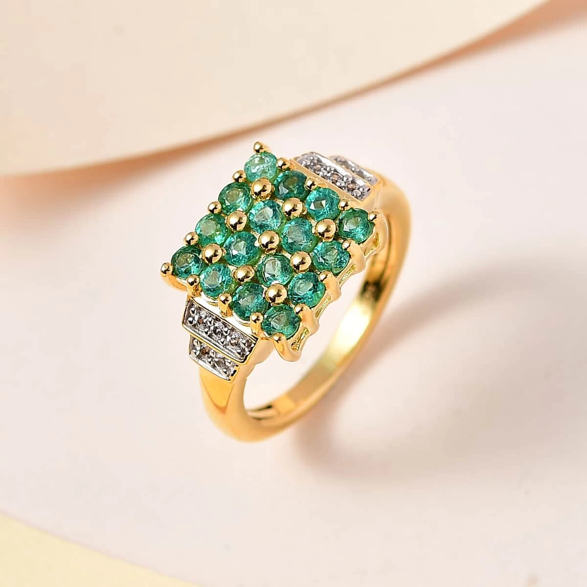 - STERLING SILVER ELEGANCE: Crafted in vermeil yellow gold over sterling silver, this white zircon ring sparkles with warmth. This precious metal blend not only enhances the overall brilliance of the ring but also perfectly complements the emerald’s lush green hue