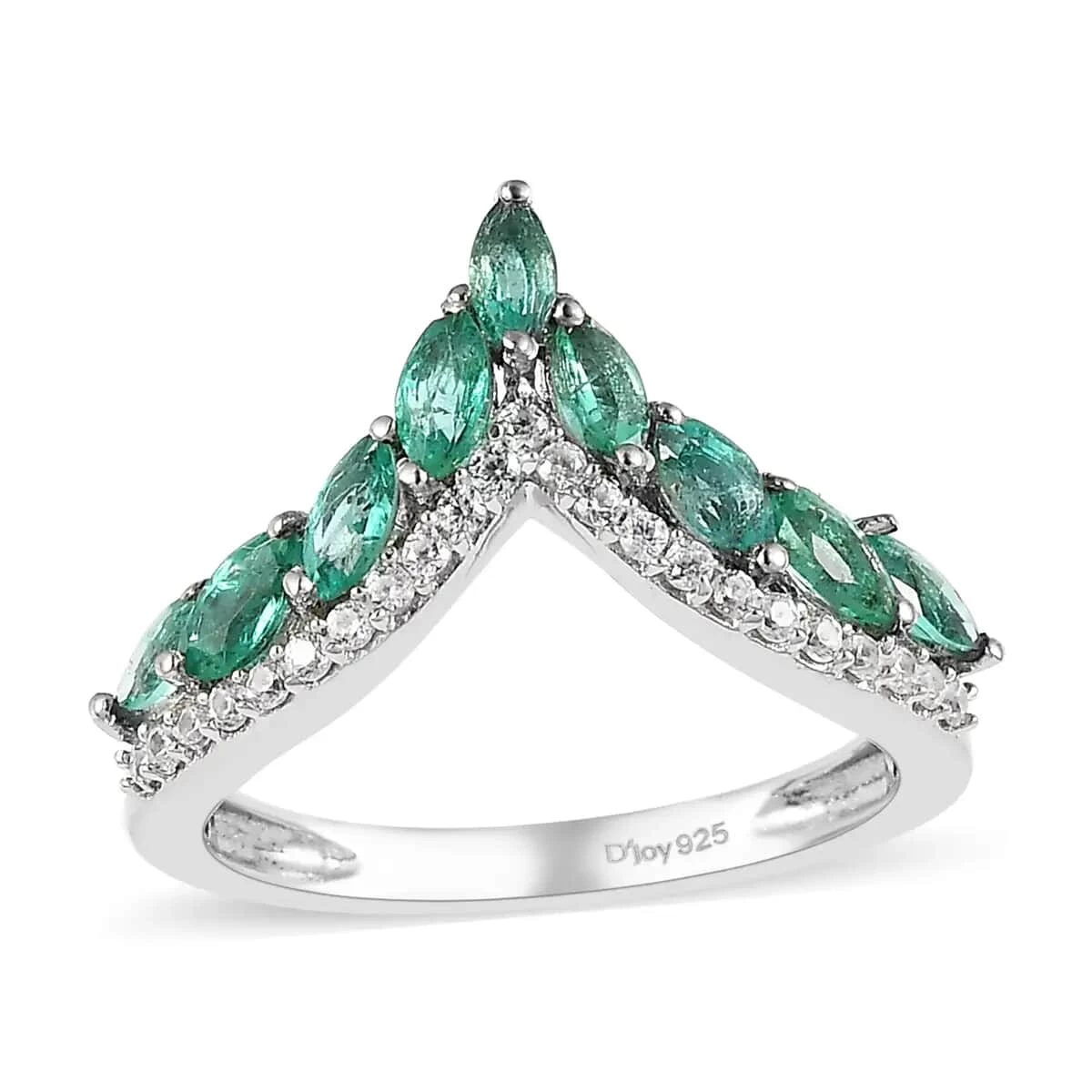 Unleash a splash of luxury with our AAA Kagem Zambian emerald ring, designed in an elegant wishbone and chevron pattern. This v-shaped ring set in platinum over sterling silver, adorned with marquise emerald and white zircons, is a jewel beyond compare. Make a wish, and may it lead you to this timeless treasure.