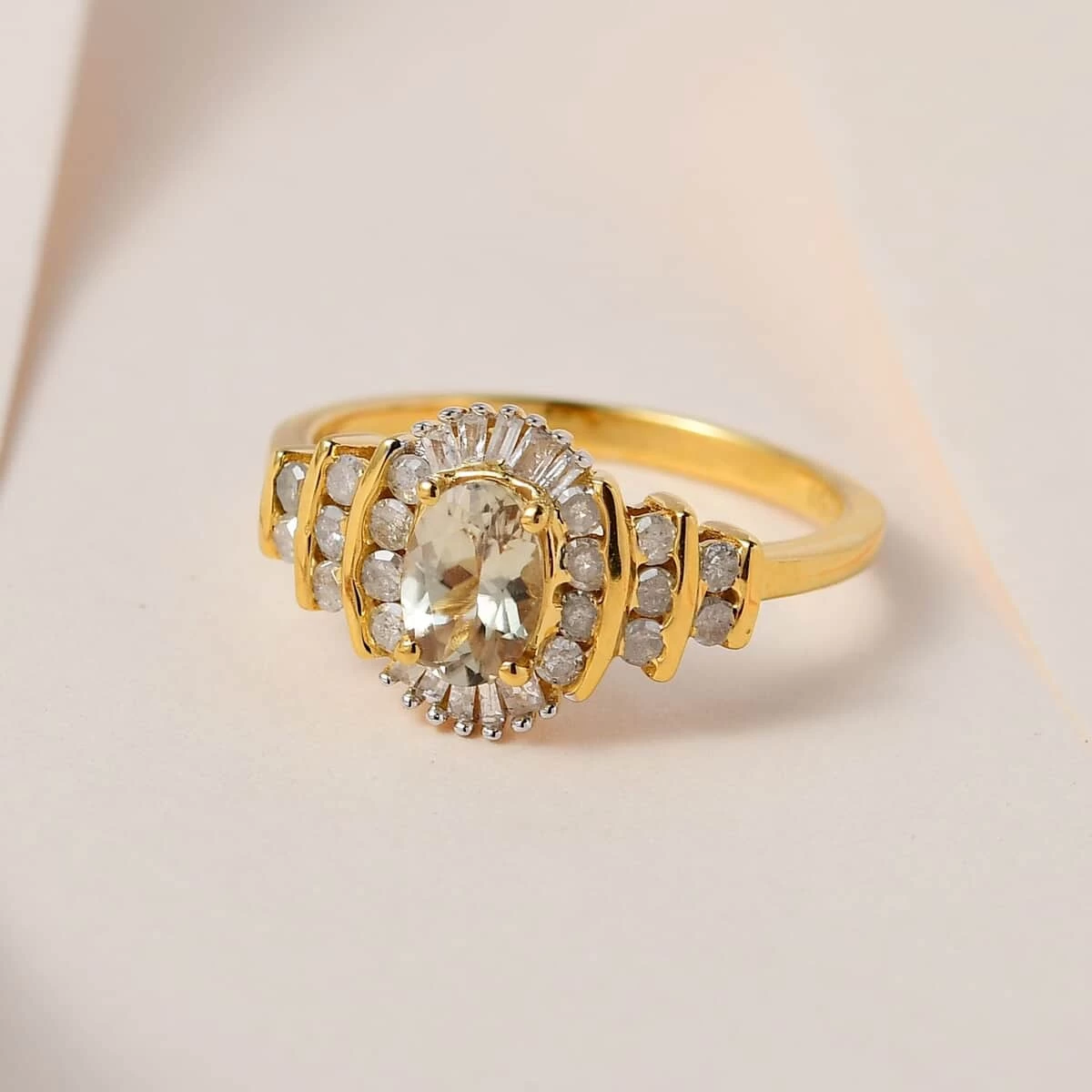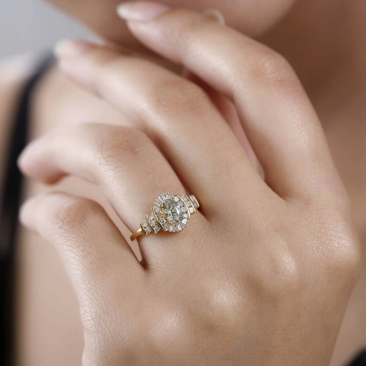 - DIAMOND DAZZLE: The scintillating halo of white diamond rounds and diamond baguettes magnifies the allure of the central turkizite, creating a turkizite and diamond ring that radiates pure sophistication
