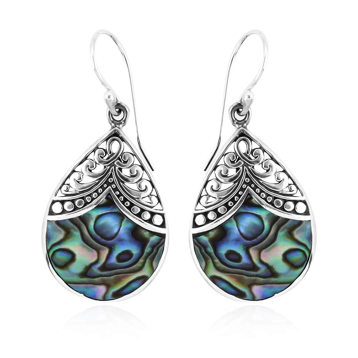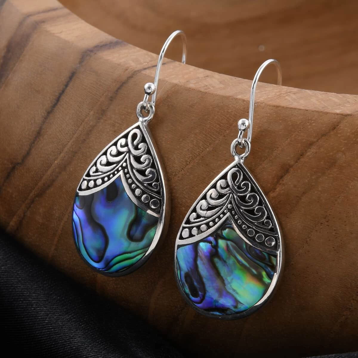 Introducing a stunning pair of jewelry that exude elegance and charm – the abalone shell drop earrings in sterling silver. Each earring showcases a lustrous abalone shell, carefully crafted and set within a beautifully detailed sterling silver frame.