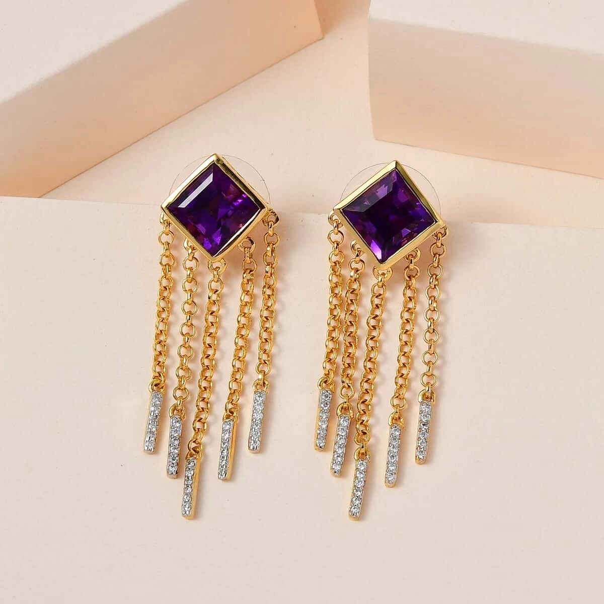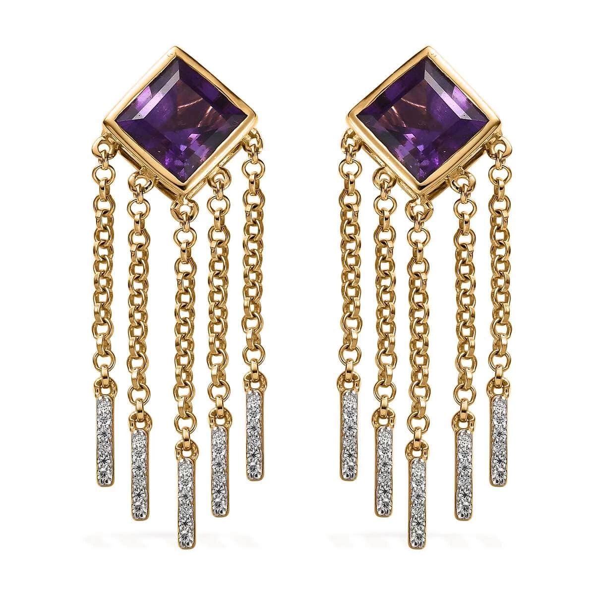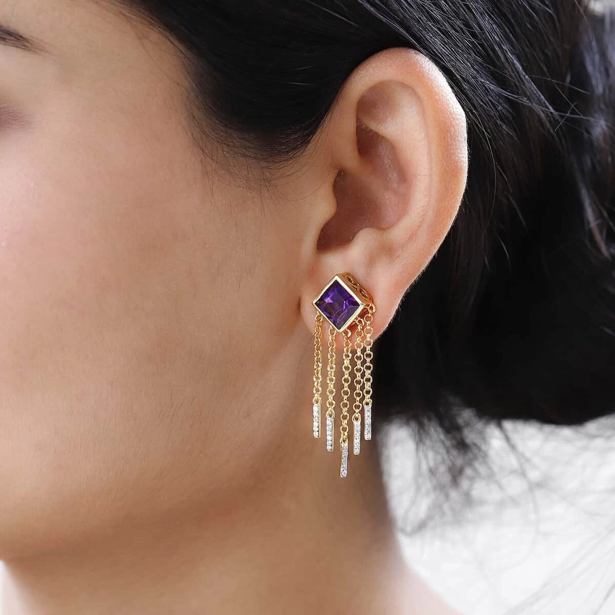Indulge in elegance and grace with our breathtaking amethyst dangle earrings in sterling silver! Mesmerizing and alluring, these earrings are an artistic masterpiece that combines the radiant charm of amethyst solitaires with the enchanting allure of delicate chain fringes adorned with dazzling moissanite line ends.