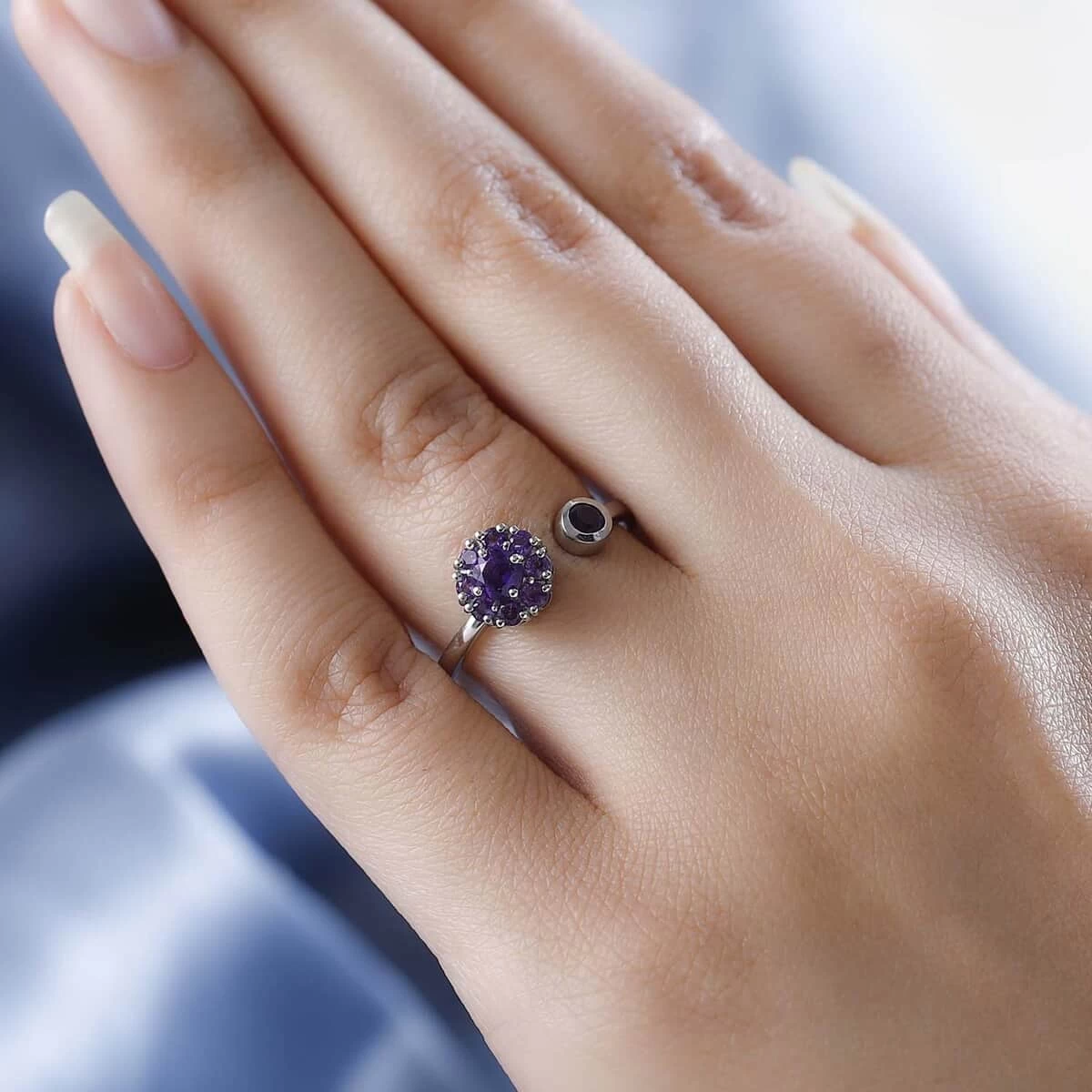 - ADJUSTABLE ALLURE: This open shank ring features both clustered and solitaire gems, encapsulating timeless elegance and versatile style
