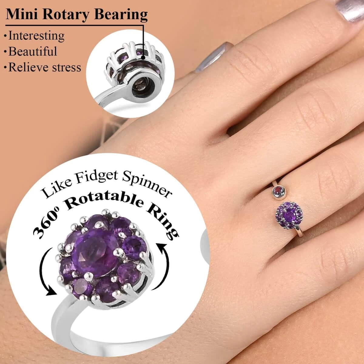 - SPINNING CLUSTER DESIGN: The spinning design of this fidget ring displays a cluster of gemstones, adding a dynamic and captivating element to your jewelry collection
