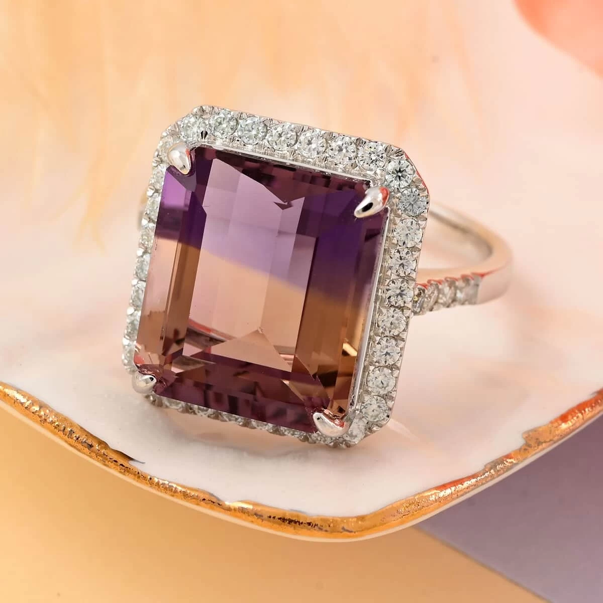 - PRONGS OF PERFECTION: The four prongs ensure the ametrine gem is beautifully showcased, enhancing the overall brilliance of this geometric ring