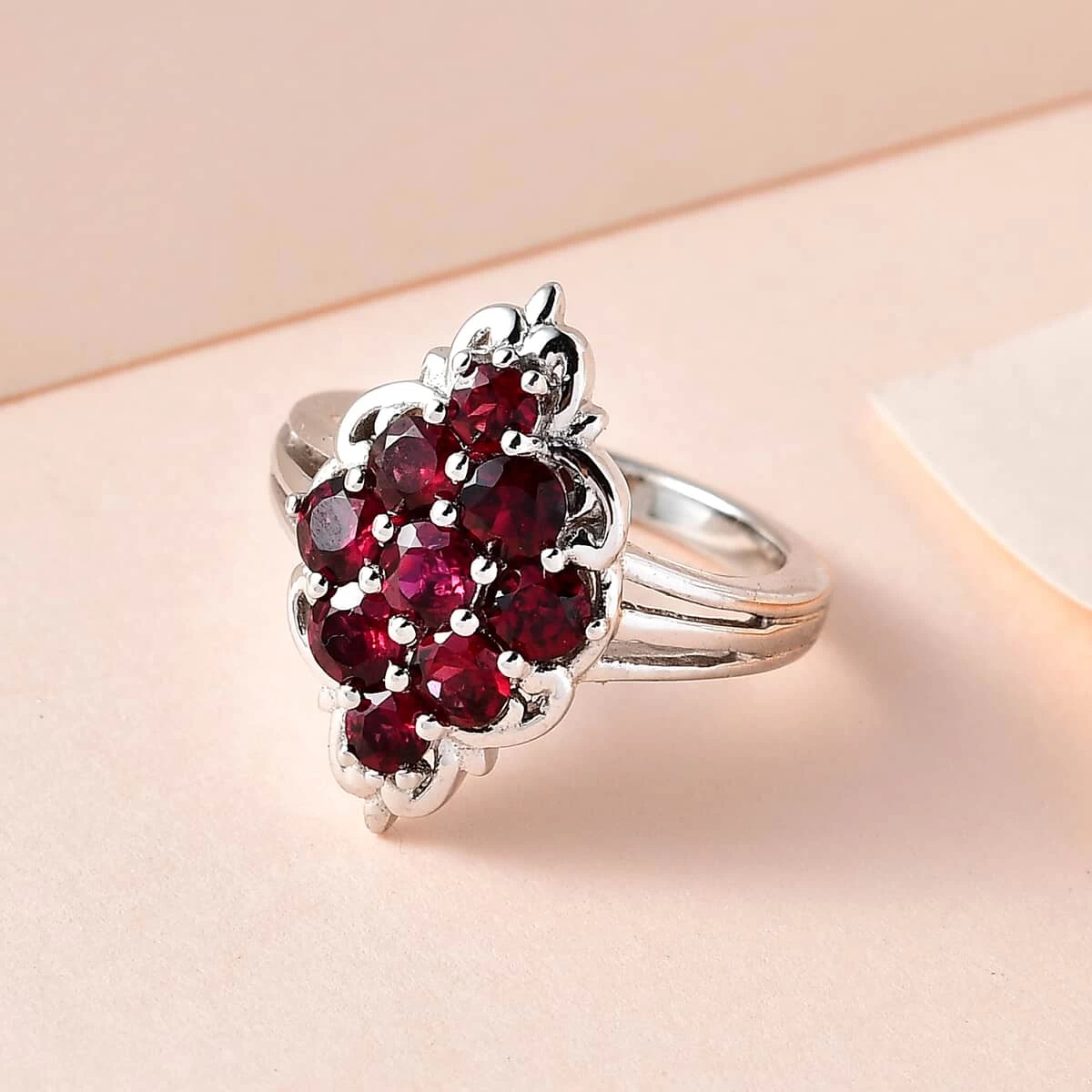 - CELESTIAL PLATINUM SHEEN: Gently cradling the garnet is the luminous embrace of platinum over sterling silver. This silvery canvas accentuates the gem’s brilliance, offering durability and a timeless luster that echoes the stars
