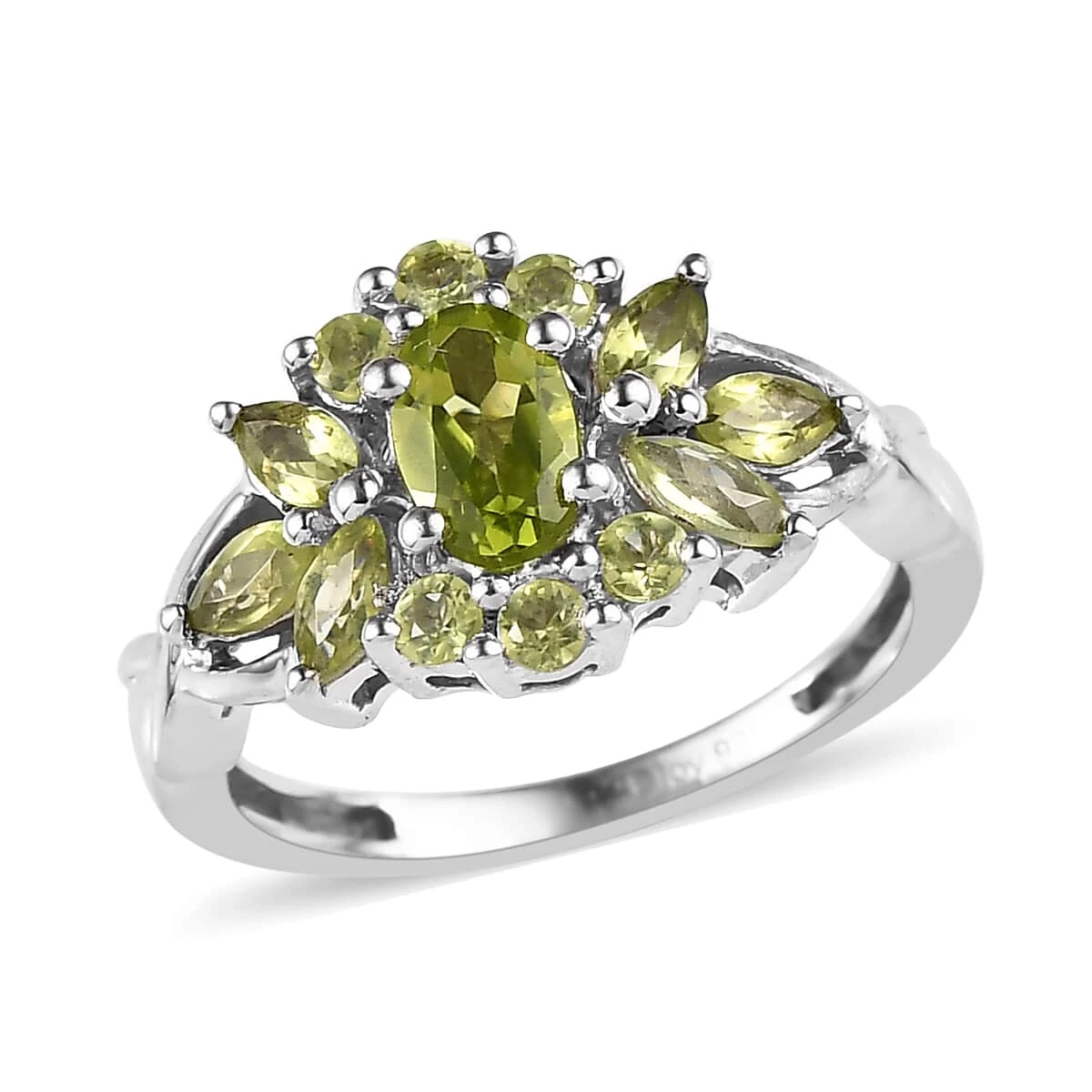 - GEMSTONE DETAILS: This ring features round, oval, and marquise-shaped peridot gems that form a floral design. Each of these gems is held perfectly in prongs
