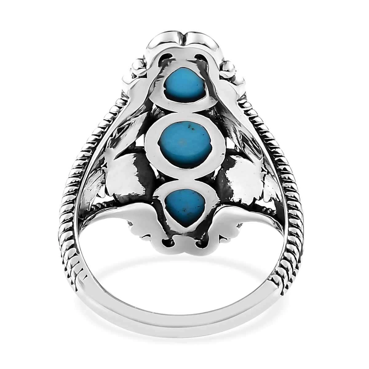 Embrace an age-old dance with the artisan crafted premium Sleeping Beauty turquoise ring. Three gemstones – in oval and pear, aligned vertically – manifest tales of arid dunes and moonlit nights. This sterling silver wonder, adorned with artistic metalwork, isn’t just a ring; it’s a desert dream waiting to wrap your finger.