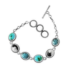 Immerse yourself in a tapestry of earth’s wonders, seamlessly interwoven into Royston and Blue moon turquoise and white buffalo bracelet. This masterfully handcrafted piece brings together the allure of Royston and blue moon turquoise with the enigmatic beauty of white buffalo, cradled within the ethereal embrace of sterling silver.
