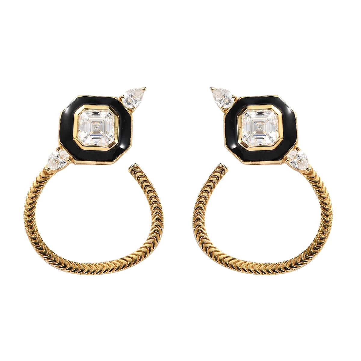 - SERPENTINE SOPHISTICATION: The moissanite earrings design, highlighted by the enameled black contour, adds a twist, mesmerizing at every glance