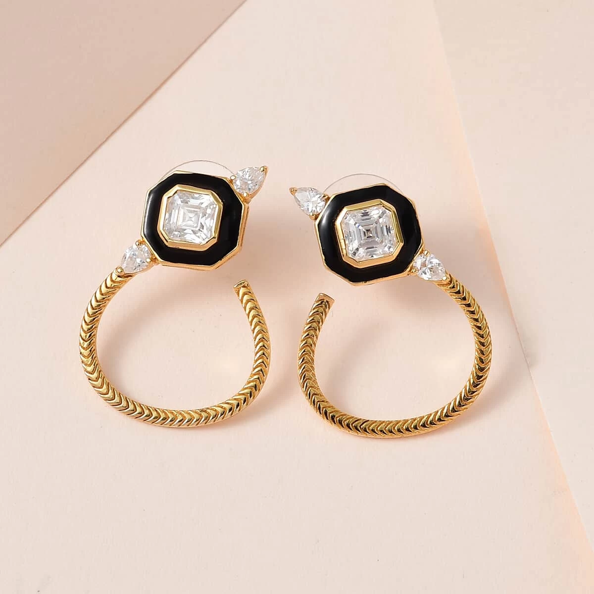 - ASSCHER EXCELLENCE: The unmatched brilliance of the asscher cut moissanite illuminates, becoming the crowning jewel of these enameled earrings