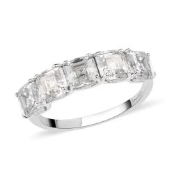 This moissanite ring is an exquisite piece of jewelry. This sterling silver ring is inspired by a five-stone ring style that adds a touch of glamour and sophistication. The five Asscher-cut moissanite gemstones are the ring’s centerpiece. Each of these moissanites is held perfectly in prong settings.