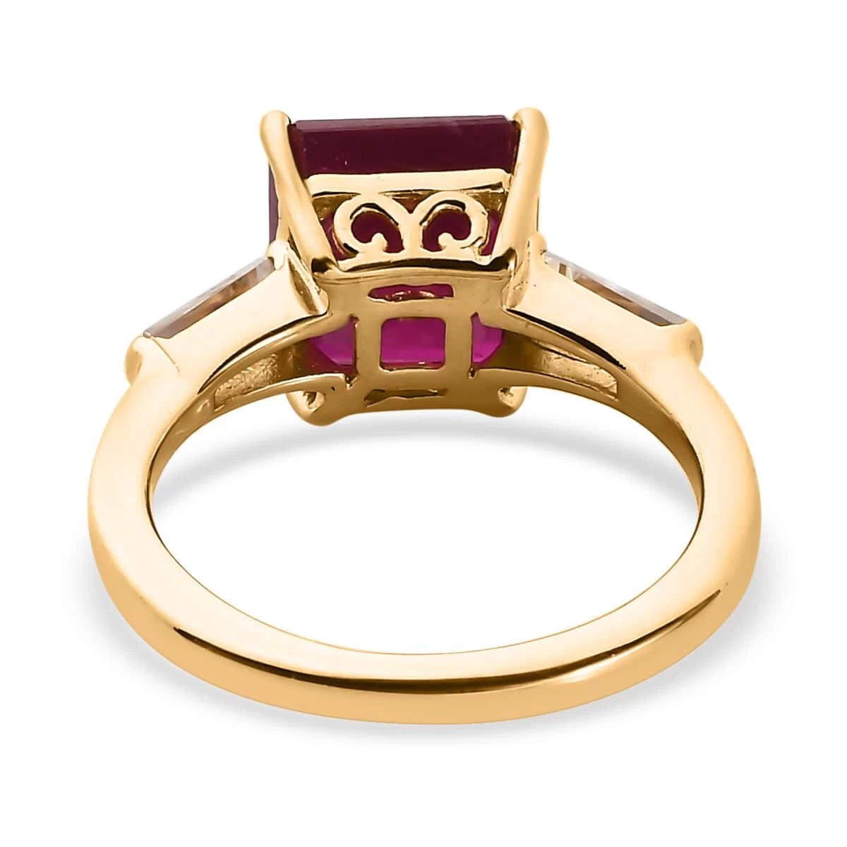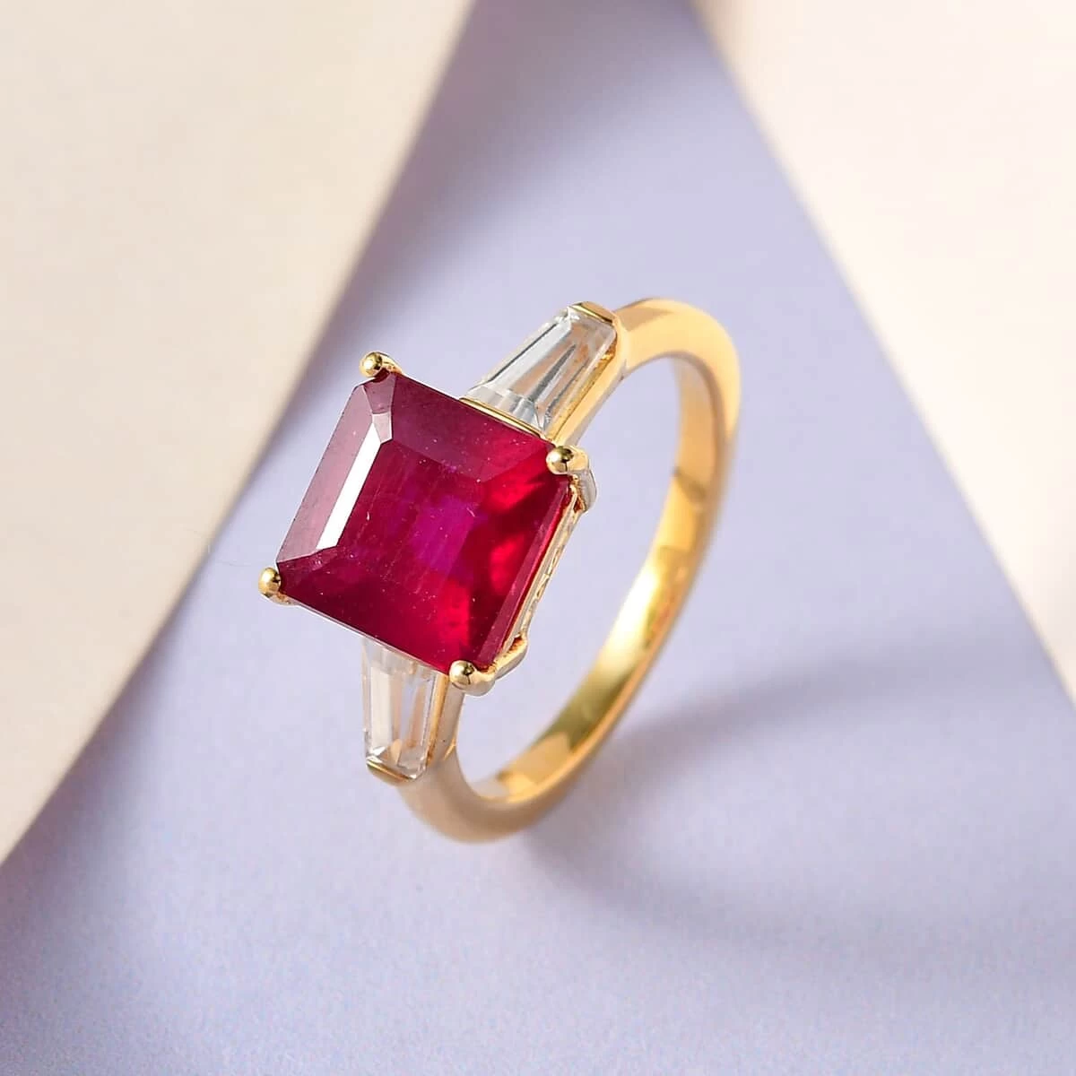 - TAPERED BAGUETTE ZIRCONS: Flanking the ruby on either side, the tapered baguette-shaped zircons of our Niassa ruby and zircon ring enhance its splendor, bringing an air of sophistication
