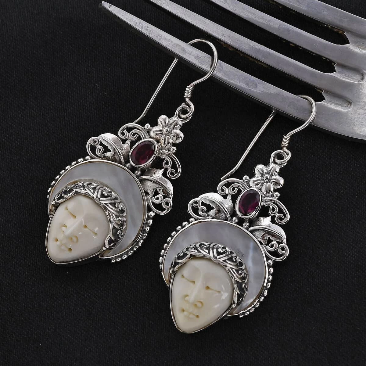 - STERLING SILVER ELEGANCE: Embrace the timeless allure of sterling silver, symbolizing sophistication and refinement. Its lustrous shine complements the delicate intricacies of the carved bone and gemstones, elevating your style to new heights