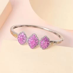 Color Change Fluorite (IR) Bangle Bracelet In Platinum Over Sterling Silver (7.25 In) 17.85 Ctw