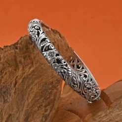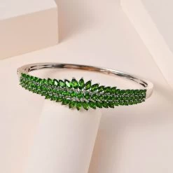 Chrome Diopside Floral Spray Bangle Bracelet In Platinum Over Sterling Silver (7.25 In) 10.60 Ctw
