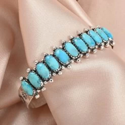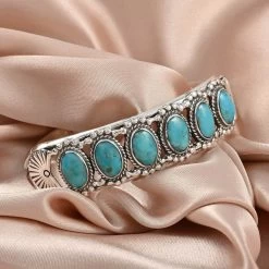 SANTA FE Style Kingman Turquoise Cuff Bracelet In Sterling Silver (7.00 In) 20 Grams 2.00 Ctw