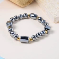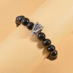 Shungite Beaded Stretch Bracelet With Dragon Charm In Black Oxidized Sterling Silver 133.50 Ctwc