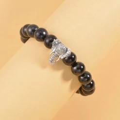 Shungite Beaded Stretch Bracelet With Elephant Charm In Black Oxidized Sterling Silver 107.00 Ctw