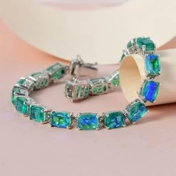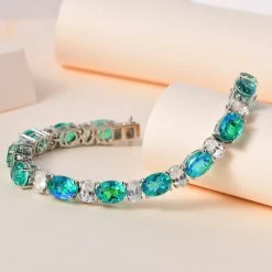 Peacock Quartz Triplet Bracelet, Tennis Bracelet, Sterling Silver Bracelet (8.00 In) 32.50 Ctw