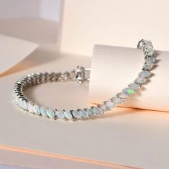 Premium Ethiopian Welo Opal Tennis Bracelet In Platinum Over Sterling Silver (7.25 In) 5.25 Ctw