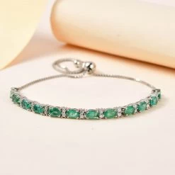 AAA Kagem Zambian Emerald And Moissanite Bolo Bracelet In Platinum Over Sterling Silver 3.00 Ctw