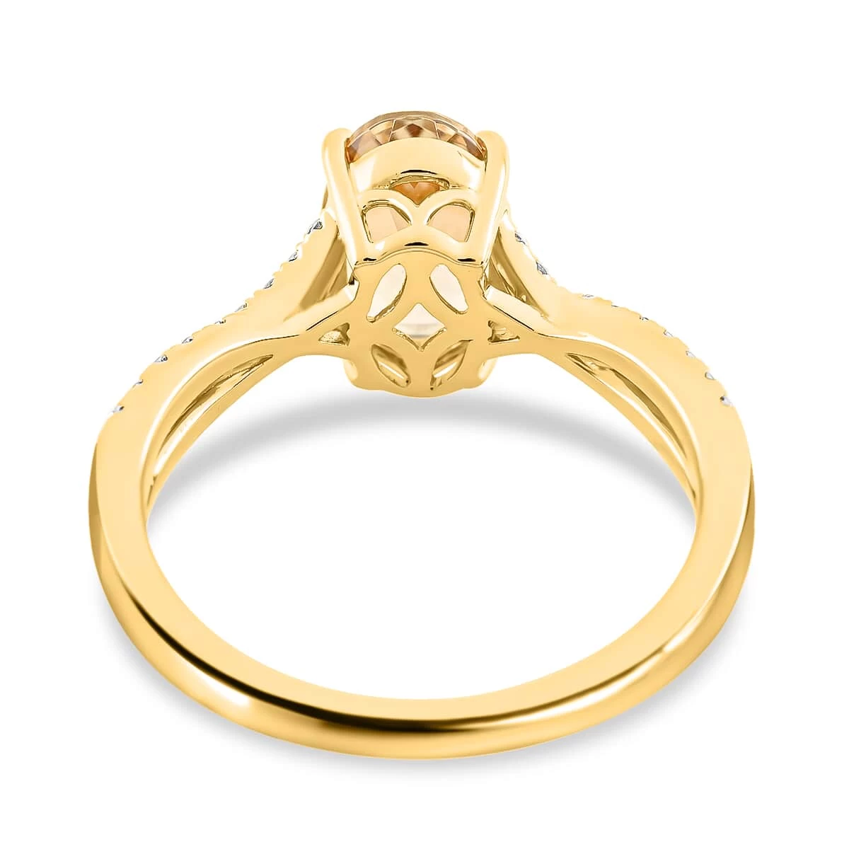 This AAA turkizite ring showcases the contemporary look in accordance with a modern sensibility. This fashion ring displays a certified and appraised oval-shaped gem in the center held perfectly by prongs safeguarding and intensifying the beauty. The white diamond on the twisted shank defines the precision and perfection taken to make this piece of adornment a remarkable one. Along with the versatility that makes this ring covetable, it’s the quality and high-shine style that makes this ring from Iliana Collection a unique one. Turkizite is a rare gem that exhibits a color-changing property representing kiwi-green to pink champagne hues making this ring a beautiful one. Perfect for every occasion, this 18K yellow gold ring showcases the beauty of a durable gem making it suitable for everyday wear.
