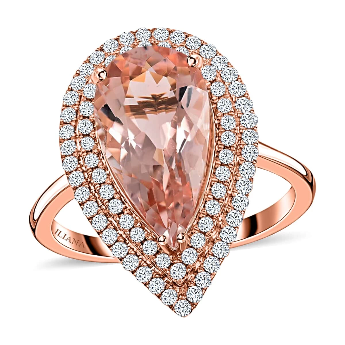 Succumb to the allure of the Iliana AAA Marropino morganite ring—a masterpiece that speaks to both power and passion. Crafted in sumptuous 18K rose gold and crowned with a super-sized pear-shaped gem, this double halo ring doesn’t just adorn; it commands attention and captivates hearts.