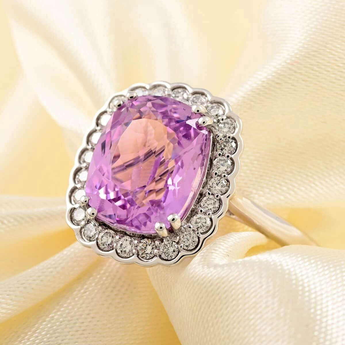 - CERTIFIED AND APPRAISED: This kunzite and diamond ring comes with a certification and appraisal, ensuring the exceptional quality and value of the gemstones. It is a mark of authenticity and distinction