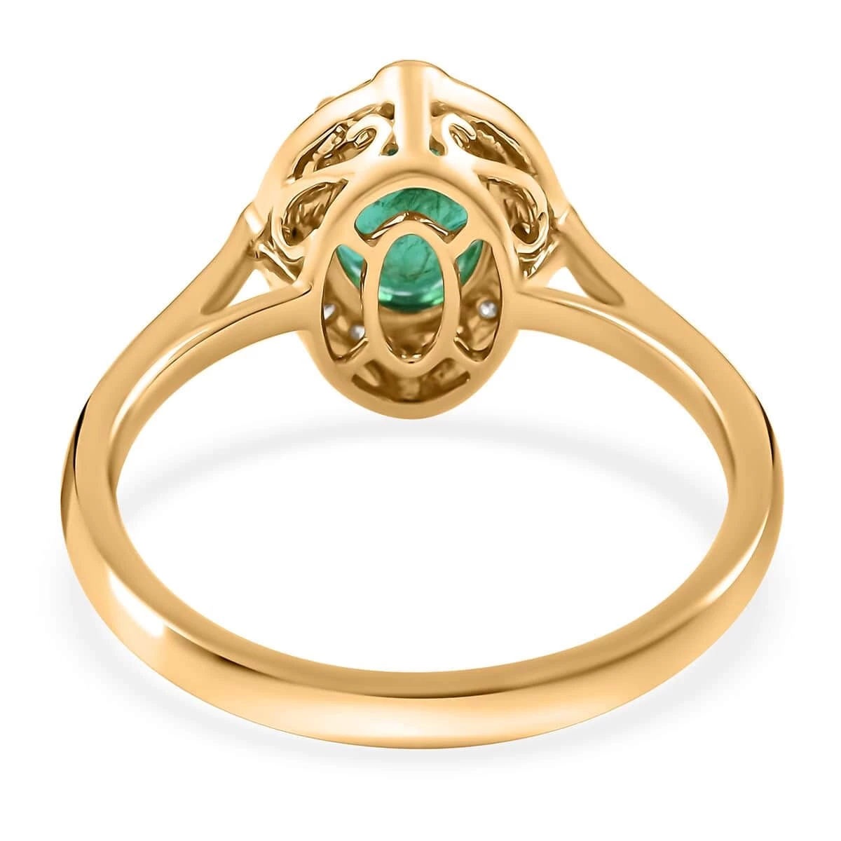 - POWER AND PROSPERITY: The oval-shaped AAA emerald at the center of this yellow gold ring is a valid symbol of power and prosperity, radiating a deep, rich green color that will capture the attention of everyone around you
