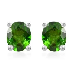 Dive into an oasis of elegance with the chrome diopside solitaire stud earrings. With each earring featuring the vivid allure of a chrome diopside gemstone, set in the shimmering embrace of Platinum over Sterling Silver, these studs are more than accessories; they are a testament to subtle sophistication. These chrome diopside earrings are the perfect ode to nature’s vibrant palette for the modern woman with a hint of the extraordinary.