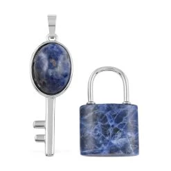 Elevate your style with our exquisite, vibrant gemstone set of lock and key pendants in silvertone. These captivating pieces aren’t just accessories; they’re expressions of your unique personality and a reflection of your sophisticated taste. Crafted to perfection, this set is a must-have for those who appreciate the finer things in life.