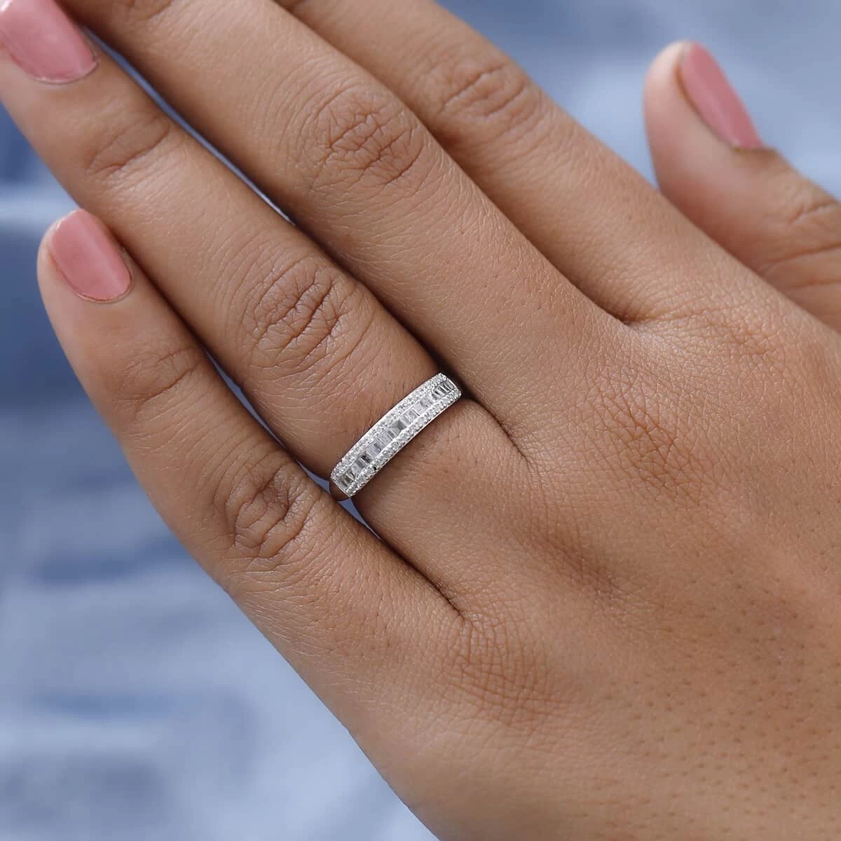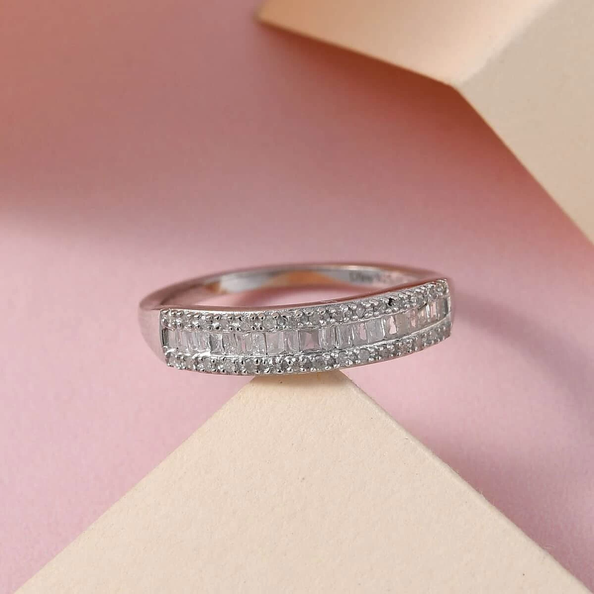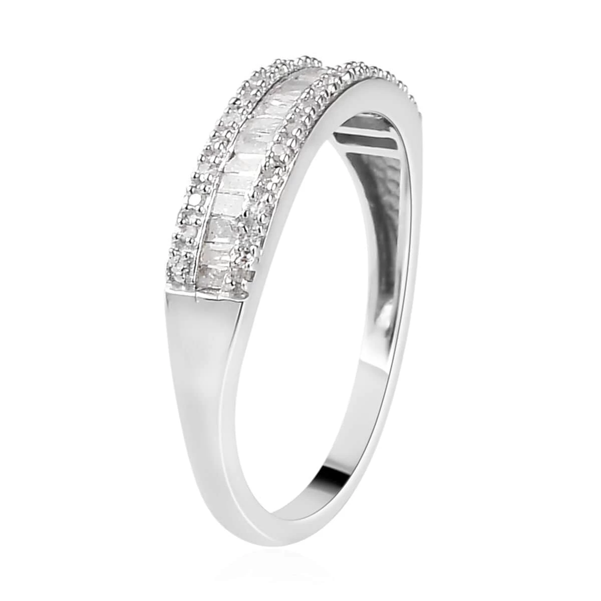 - SETTING PERFECTION: The channel set diamond baguettes and prongs set diamond rounds in this band ring unite in a perfect embrace. This meticulous design ensures each stone is showcased in its full brilliance