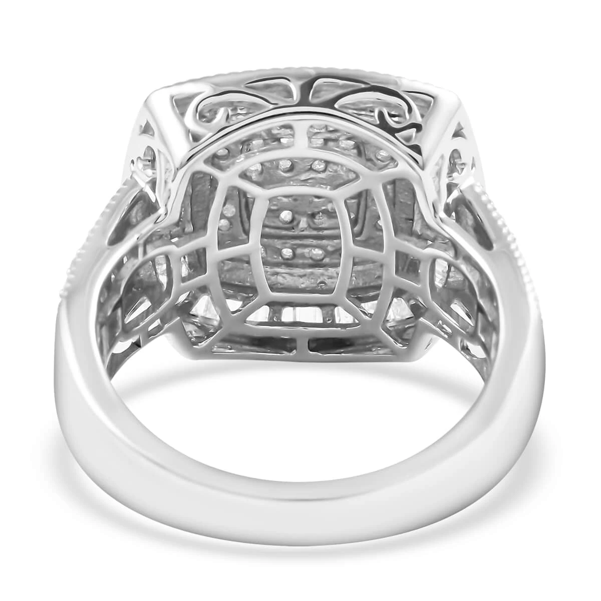 - COMFORT FIT: This diamond 925 sterling silver cluster platinum plated ring has a smooth under gallery that slides the finger easily. The hypoallergenic metal is safe for all skin types