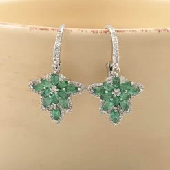 AAA Kagem Emerald And White Zircon Lever Back Earrings In Rhodium Over Sterling Silver 2.40 Ctw