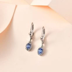 Ceylon Blue Sapphire And White Zircon Lever Back Earrings In Platinum Over Sterling Silver 0.75 Ctw