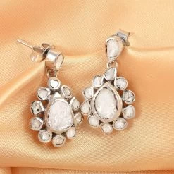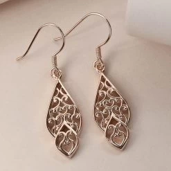 Openwork Dangle Earrings In 14K Rose Gold Plated Sterling Silver, Silver Drop Earrings For Women
