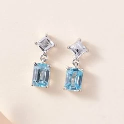 Premium Montepuez Ruby And White Zircon Dangling Earrings In Platinum Over Sterling Silver 2.50 Ctw