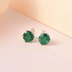 AAA Kagem Zambian Emerald Solitaire Stud Earrings In Platinum Over Sterling Silver 1.00 Ctw