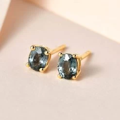 AAA Natural Australian Sapphire Stud Earrings In Vermeil Yellow Gold Over Sterling Silver 0.90 Ctw