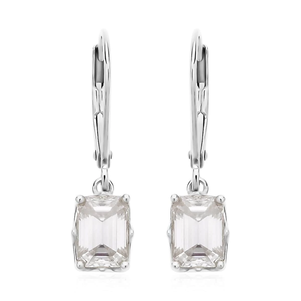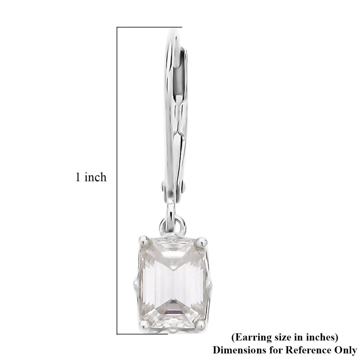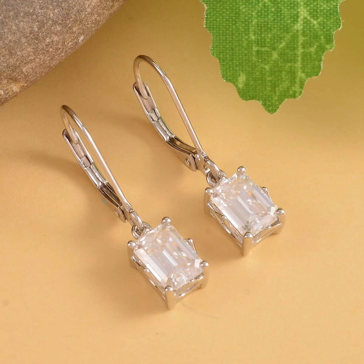 Inspired by the solitaire theme, these emerald cut moissanite lever back earrings bring forth the ecstasy of adorning elegant designs. Solitaire theme symbolizes the beautiful moments in the passage of life with the loved ones. Emerald cut emphasizes long parallel steep cuts along clipped corners to fashion an octagon-like shape. A modern emerald-cut moissanite is set in the center, celebrating the minimal design with a touch of luxury. The refractive index of moissanite is higher than that of diamonds, offering enhanced fire and brilliance. The moissanite gemstone is ecofriendly as not many natural sources are used. The iconic prong setting uplifts the gemstone, shining all the light in the center from different directions, allowing more sparkle and efficient dispersion of light. These lever-back earrings are gracefully designed in sterling silver, dripping with an essence of luxury and feminine charm. The tarnish resistant metal frame sustains longevity. These earrings can be an heirloom that can be passed on to generation for its intensified radiance and subtle beauty.