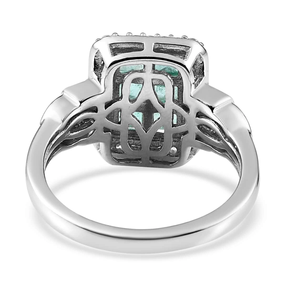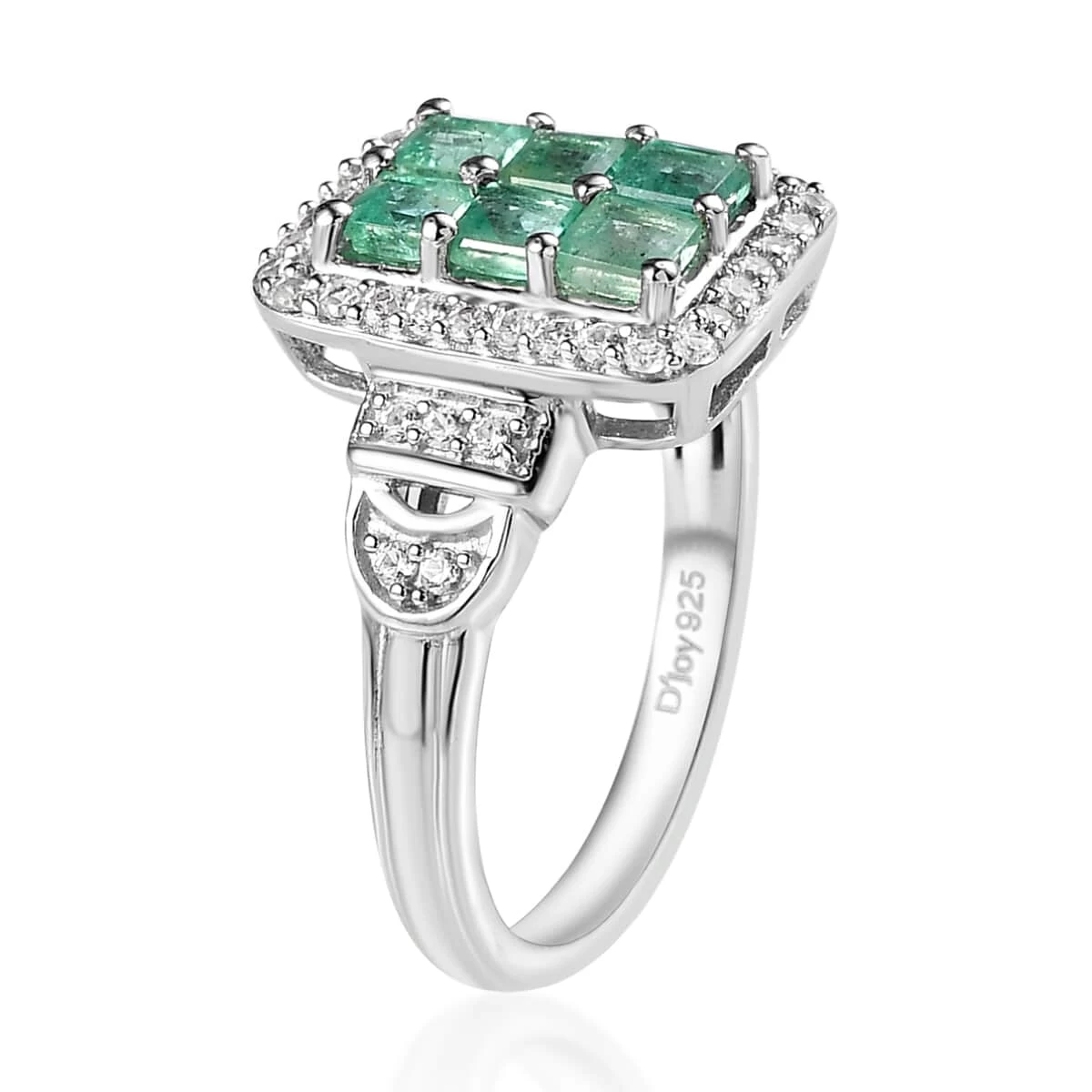 Rediscover timeless elegance with the Ethiopian emerald ring. Drawing inspiration from the opulence of the art-deco era, its geometric forefront boasts square-shaped gemstones, wrapped in a glittering periphery of white zircons. Set against platinum over sterling silver, this piece echoes the luxury of bygone days with contemporary finesse.