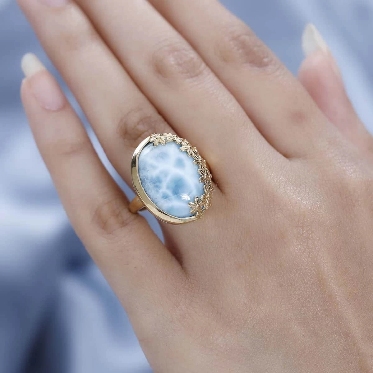 - PLAYFUL PARADISE: As a part of the GP Italian Garden Collection, this larimar floral ring exemplifies the brand’s playful creativity, transforming each piece into a wearable work of art